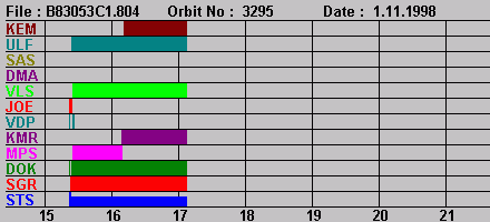 | Number | Orbit | Date | From | To | Frames | Qu. | 40: 20:5kb | SGR | DOK | MPS | KMR | VDP | JOE | VLS | DMA | SAS | ULF | KEM |
